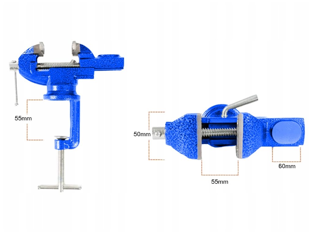 - Snadné upevnění: Robustní šroub s přítlačnou podložkou umožňuje upevnění svěráku na pracovní desku o maximální tloušťce 55 mm.