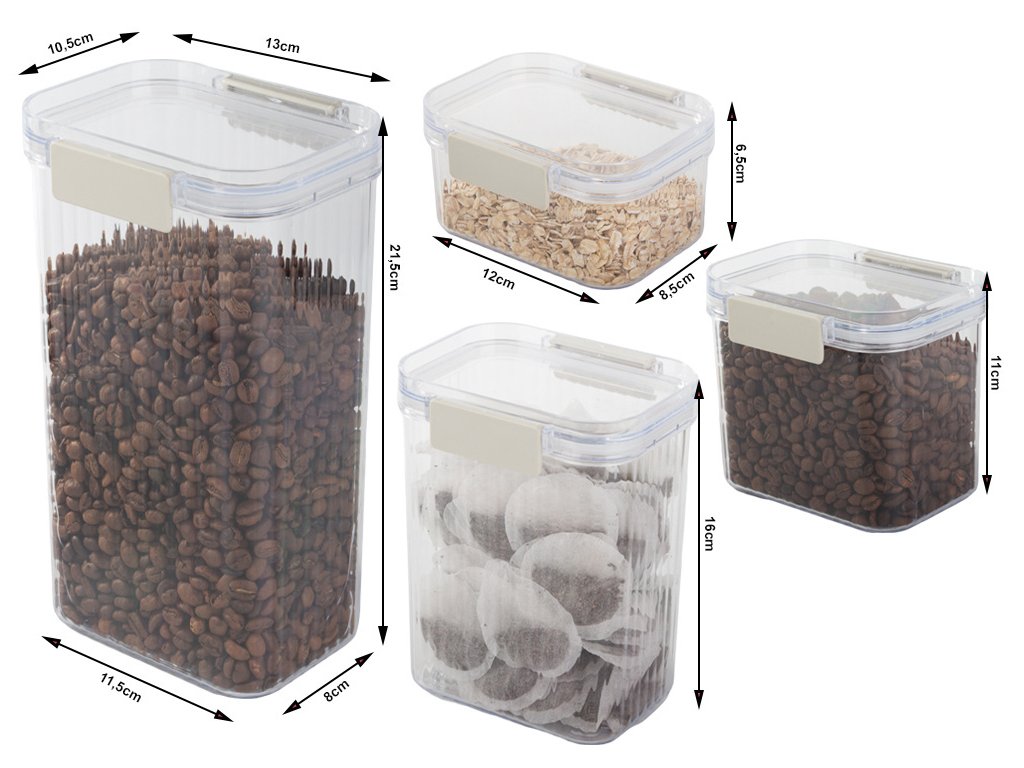 Tato sada je ideální volbou pro všechny, kdo chtějí mít kuchyni dobře zorganizovanou a potraviny chráněné před okolními vlivy. Kvalitní zpracování, praktické rozměry a moderní vzhled z ní dělají nepostradatelného pomocníka v každé domácnosti.