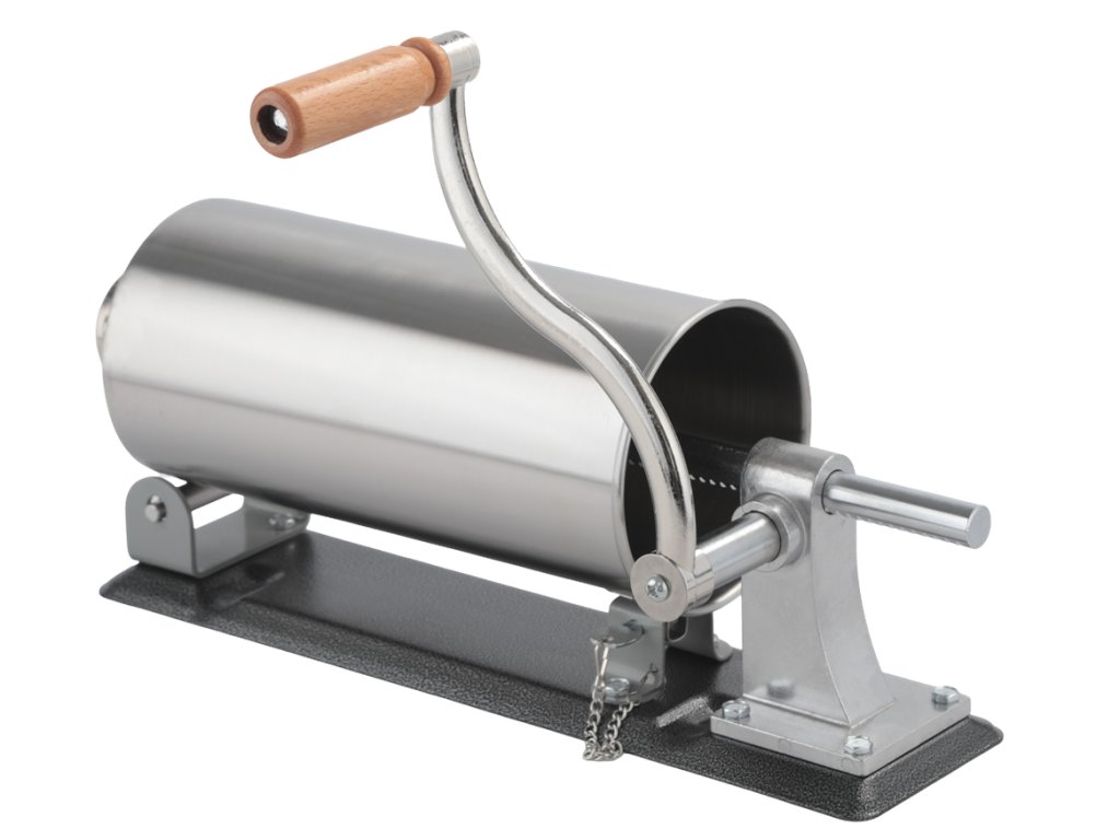 Kapacita válce 3 kg umožňuje naplnit větší množství směsi najednou, takže práce je rychlejší a pohodlnější i při přípravě větší dávky klobás.