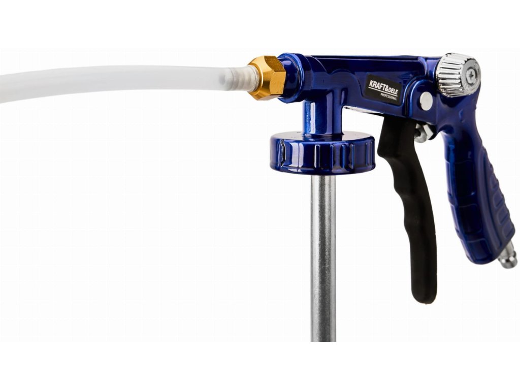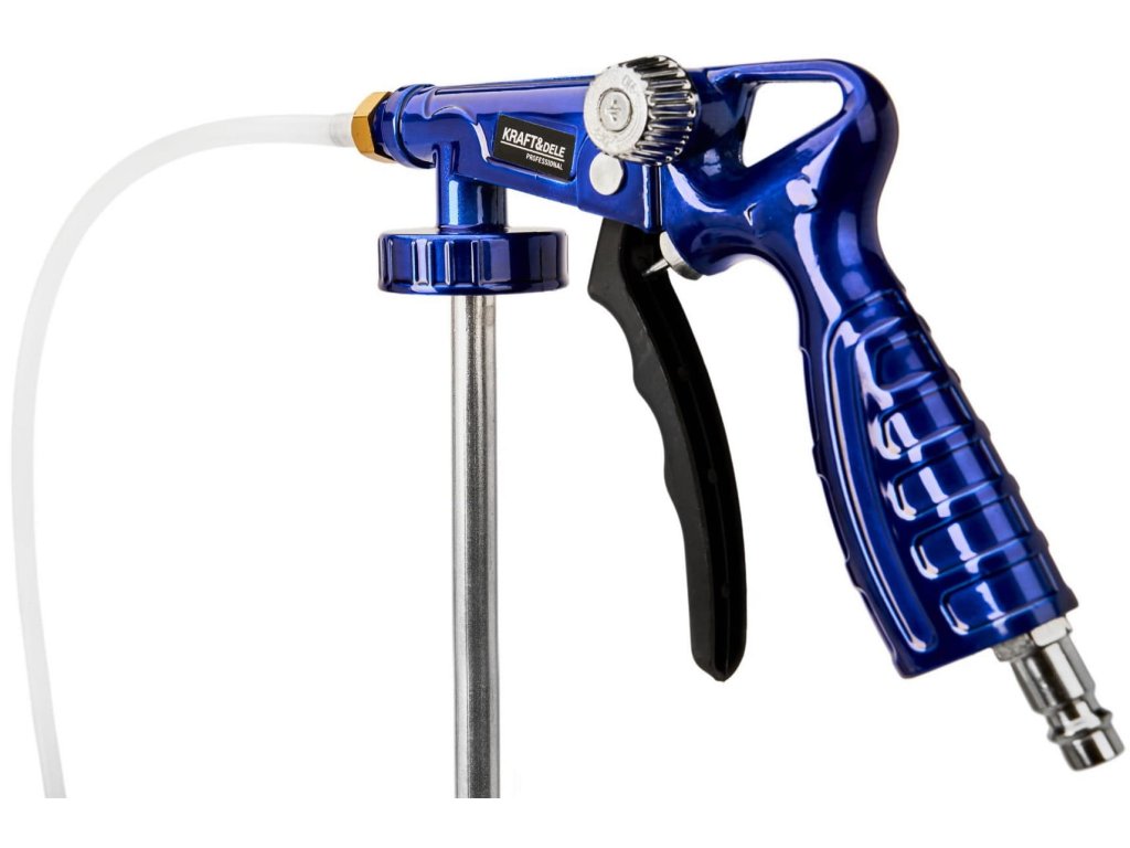 Pneumatická aplikační pistole KD2116 od značky KRAFT&DELE je profesionální údržbová pistole určená pro přesné a rovnoměrné nanášení konzervačních a ochranných prostředků. Je ideální pro použití v autoservisech, dílnách i domácích podmínkách. Díky robustní kovové konstrukci a ergonomickému provedení umožňuje pohodlnou práci i při delším používání. Součástí balení je 500mm hadice, která umožňuje aplikaci přípravků i do uzavřených profilů a těžko dostupných míst.