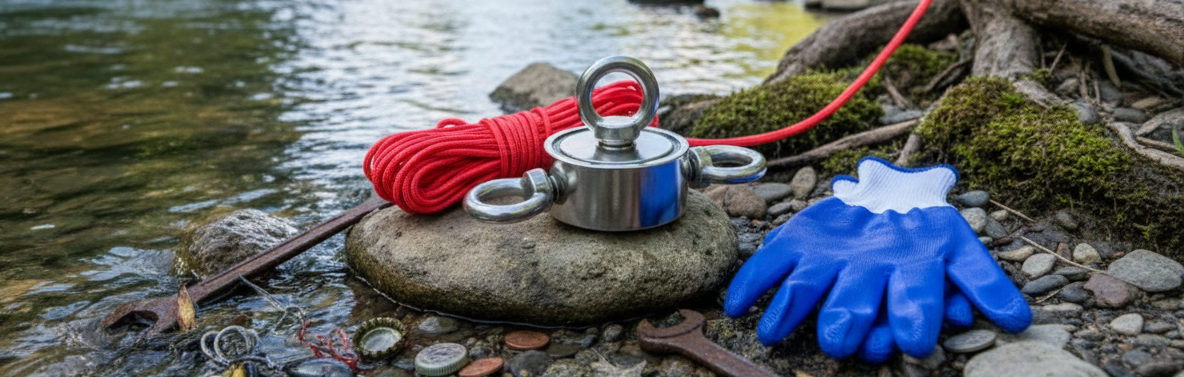 - Silný neodymový magnet pro efektivní vyhledávání kovů.