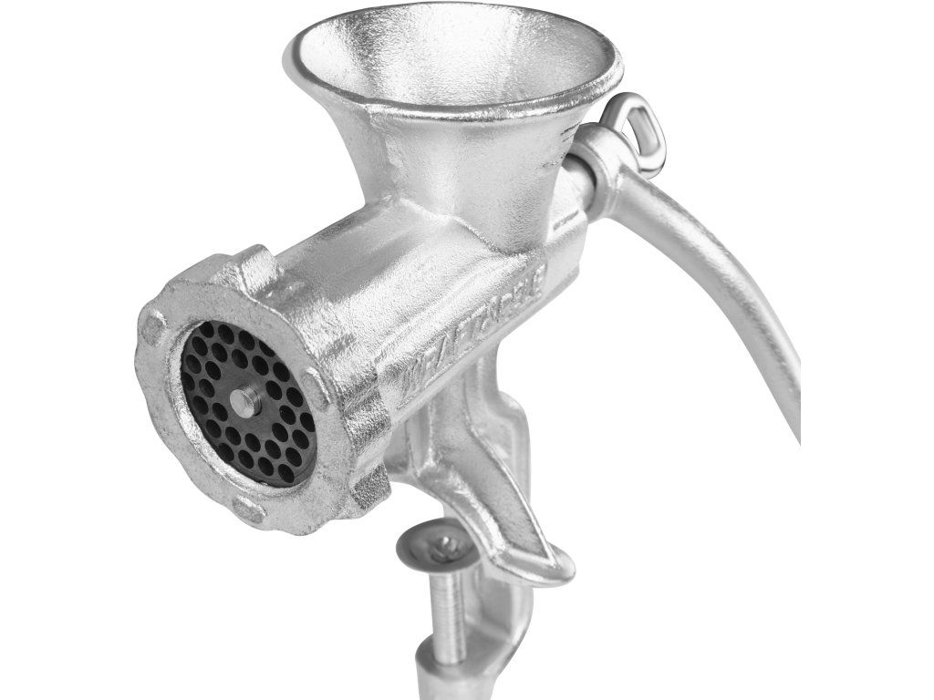 Ruční mlýnek na maso je praktický a odolný kuchyňský nástroj určený pro zpracování masa, přípravu nádivek i domácích uzenin. Díky klasickému mechanickému provedení nevyžaduje elektrické napájení, což z něj činí spolehlivého pomocníka do každé domácnosti. Robustní konstrukce z pozinkované litiny a stabilní upevnění ke stolu zajišťují bezpečný a efektivní provoz.