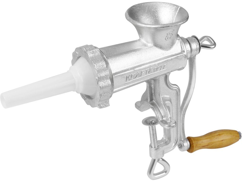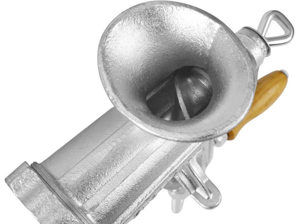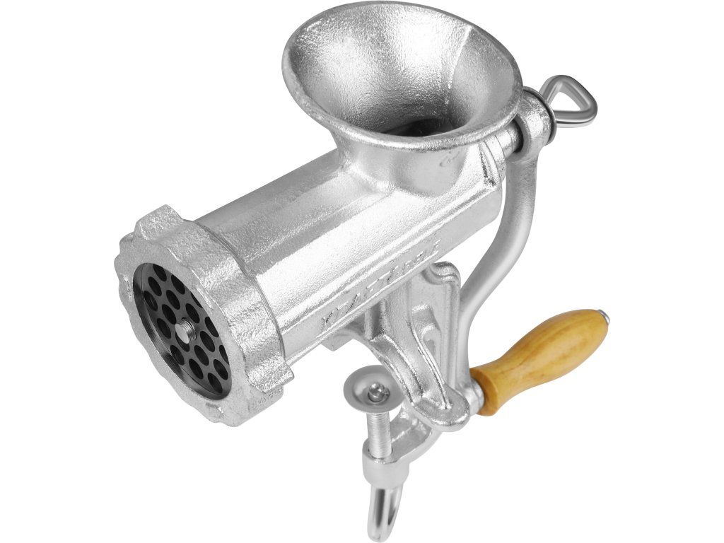 Ruční mlýnek na maso je praktický a odolný kuchyňský nástroj určený pro zpracování masa, přípravu nádivek i domácích uzenin. Díky klasickému mechanickému provedení nevyžaduje elektrické napájení, což z něj činí spolehlivého pomocníka do každé domácnosti. Robustní konstrukce z pozinkované litiny a stabilní upevnění ke stolu zajišťují bezpečný a efektivní provoz.