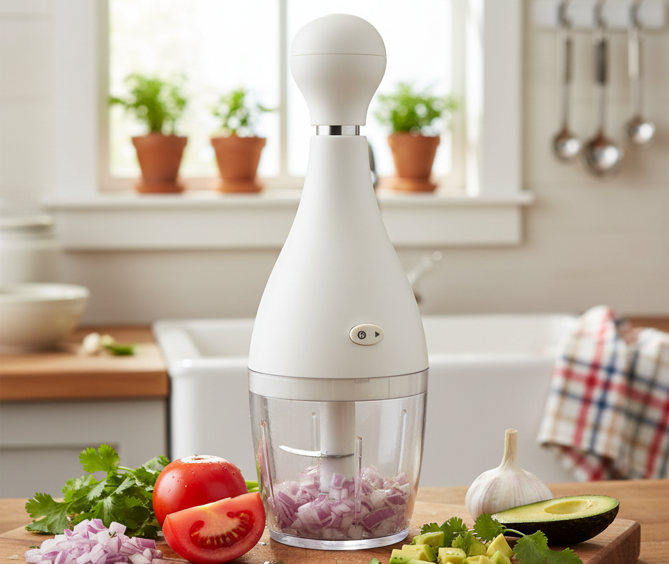 Praktický kuchyňský pomocník pro každodenní použití bez zbytečné námahy. Díky jednoduchému mechanismu a ostrým čepelím nasekáte zeleninu během pár vteřin – ať jste doma, nebo v přírodě.