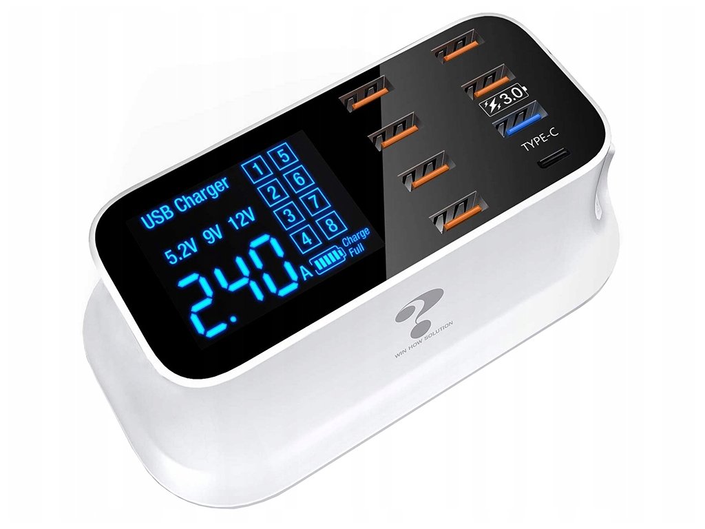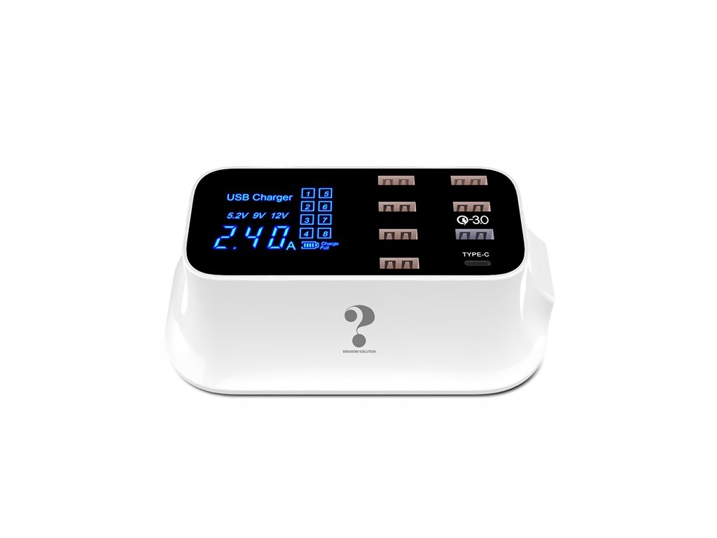 Rychlonabíječka s výkonem 40 W a osmi USB porty umožňuje současné nabíjení až osmi zařízení z jednoho zdroje. Je vybavena přehledným LED displejem, který zobrazuje informace o napětí, proudu a úrovni nabití připojených zařízení. Díky inteligentnímu řízení výkonu nabíječka automaticky rozpozná každé připojené zařízení a nastaví pro něj optimální nabíjecí proud. Podpora technologie Qualcomm Quick Charge 3.0 zajišťuje výrazně rychlejší nabíjení oproti běžným USB nabíječkám, a to při zachování maximální bezpečnosti.