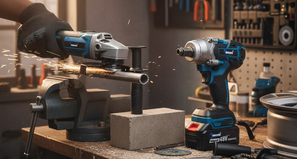 - Elektrické nářadí: úhlové brusky, vrtačky, multifunkční brusky, přímočaré pily a další.