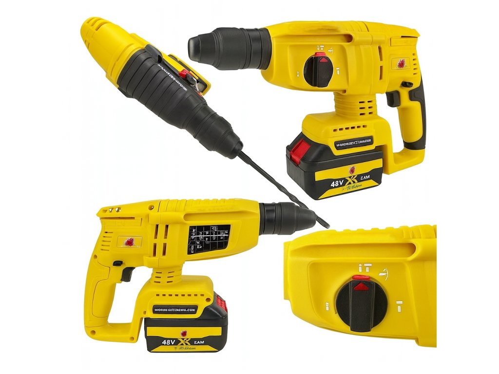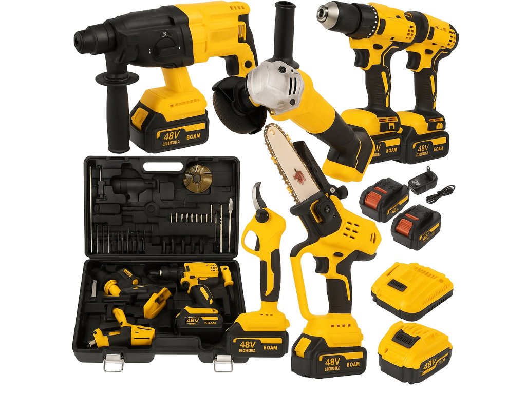 Univerzální sada akumulátorového nářadí 6v1 nabízí kompletní řešení pro domácí i profesionální použití. Obsahuje úhlovou brusku, vrtací kladivo SDS-PLUS, příklepový šroubovák, rázový utahovák a okružní pilu. Všechny nástroje jsou napájeny výkonnými 48V Li-Ion bateriemi s kapacitou 5000 mAh. Díky bezkartáčovým motorům nabízí vysoký výkon, dlouhou životnost a tichý chod. Sada je ideální pro kutily i náročné uživatele hledající flexibilitu, výkon a spolehlivost.