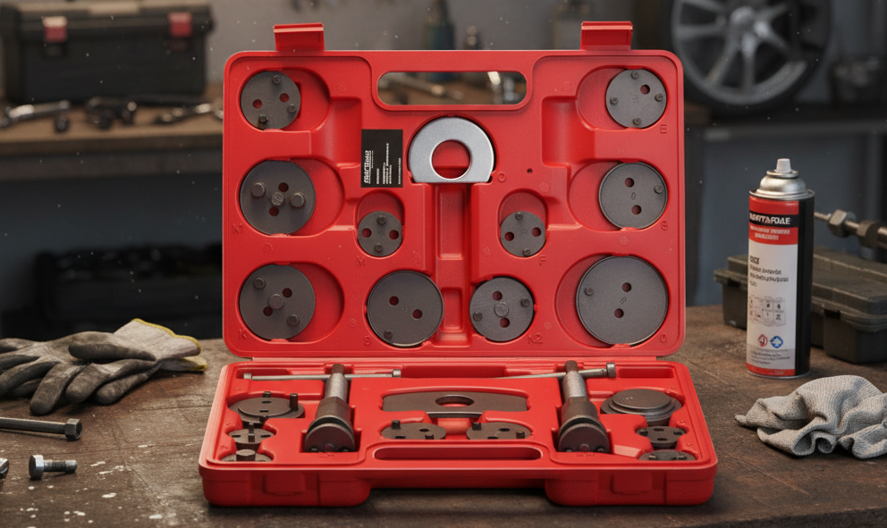Sada na stlačování brzdových pístů je profesionální nástroj určený pro rychlou a přesnou montáž brzdových pístků u vozidel s kotoučovými brzdami. Je kompatibilní s většinou evropských i asijských automobilů a vhodná i pro práci s keramickými písty. Díky kvalitní konstrukci a široké sadě adaptérů umožňuje efektivní práci v autoservisech i domácích dílnách. Celá sada je uložena v odolném plastovém kufru pro snadné přenášení a organizaci.