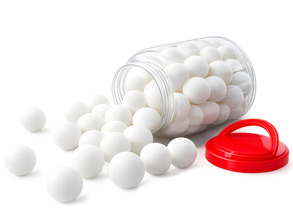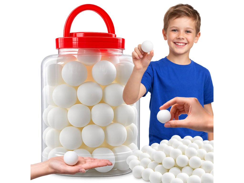Praktická sada 60 míčků na stolní tenis je ideální volbou pro trénink i rekreační hraní. Míčky jsou vyrobeny z odolného plastu, který zajišťuje stabilní odskok, dobrou kontrolu a dlouhou životnost. Díky velkému množství v balení jsou perfektní pro školy, sportovní kluby i domácí použití. Součástí je také praktická průhledná nádoba s uchem pro snadné skladování a přenášení.