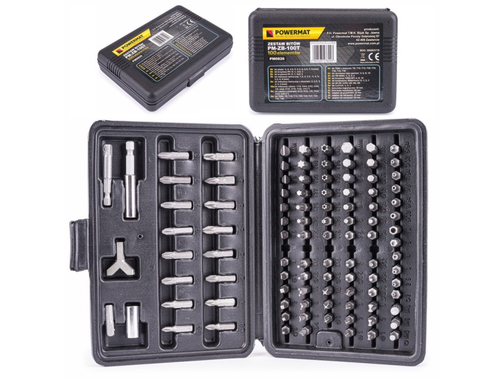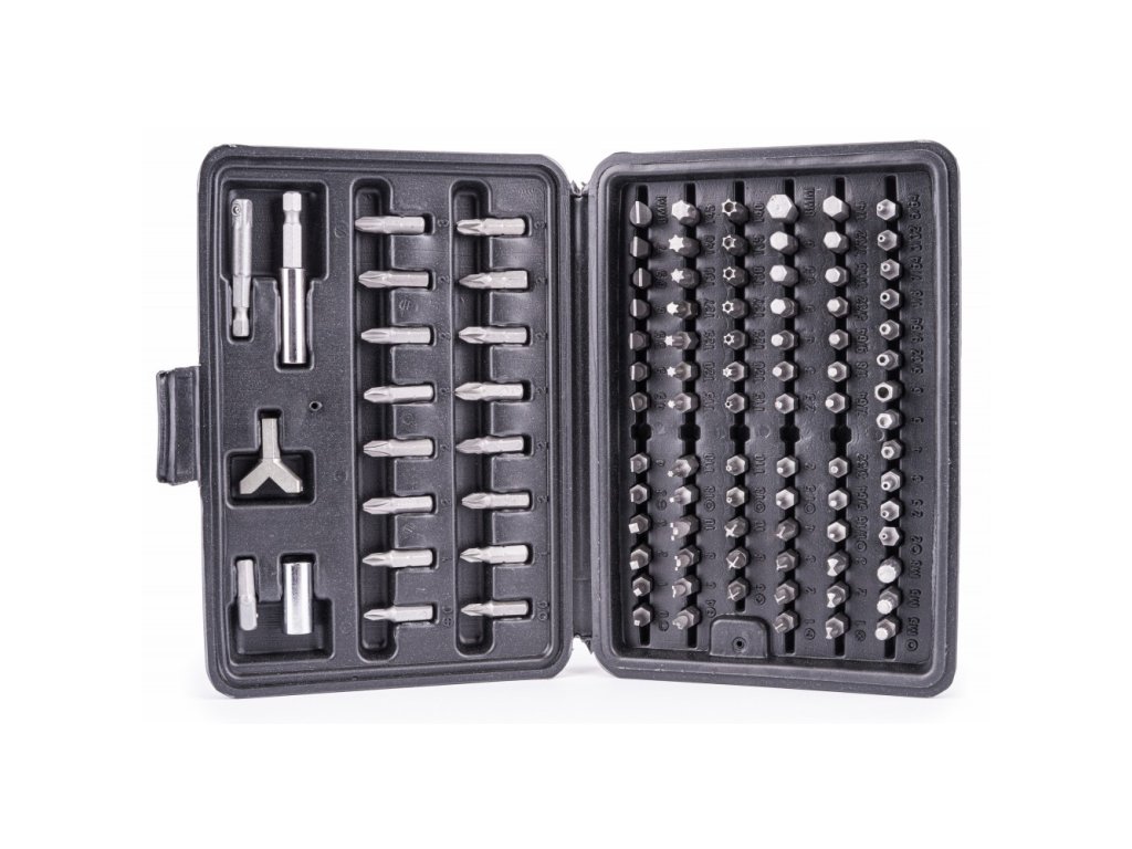 Praktická 100dílná sada, kterou by měl mít ve své dílně každý nabízí širokou nabídkú univerzálních, profesionálních bitů z chromvanadiové oceli. Sada je vyrobena z prvotřídních materiálů a vše je zabalené v praktickém kufříku. Sada obsahuje:- plochý bit: 3; 4; 4,5; 5; 5,5; 6; 6,5; 7; 8 [mm]