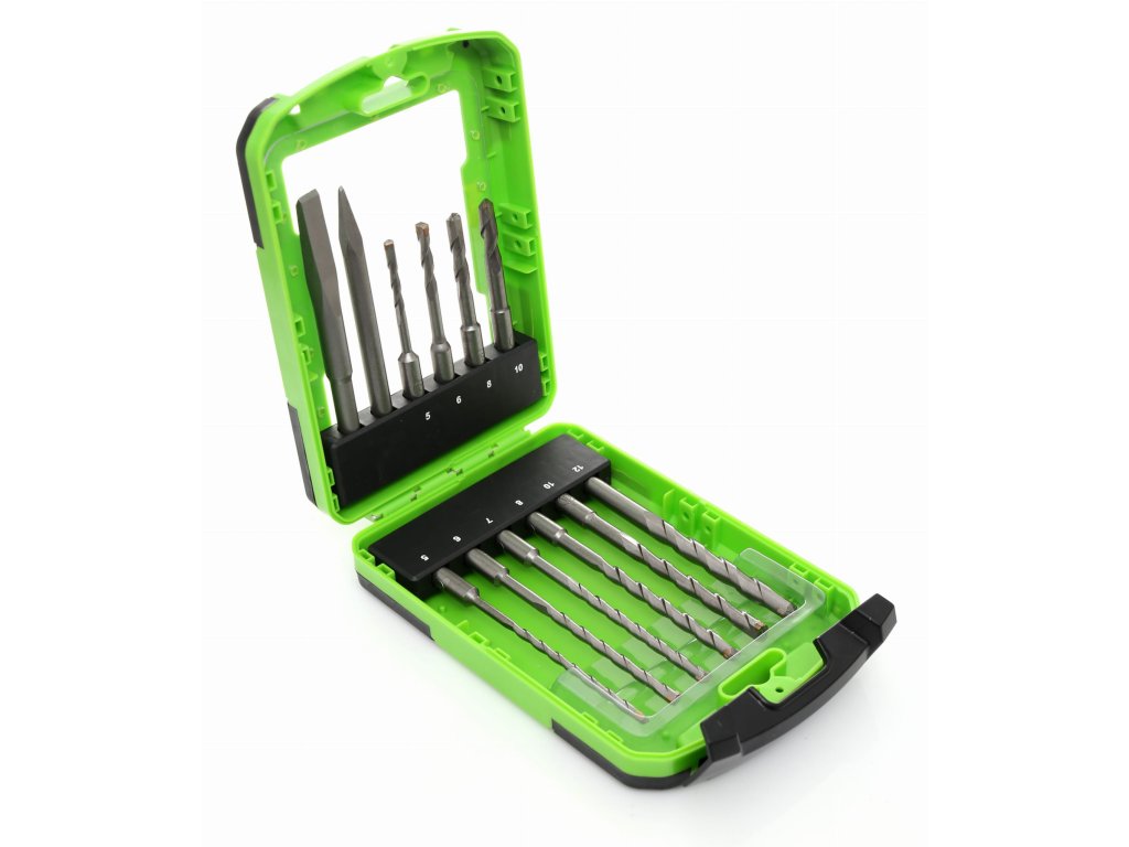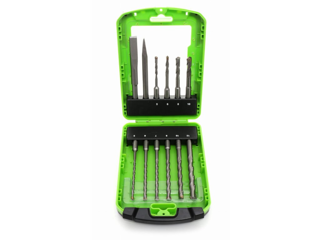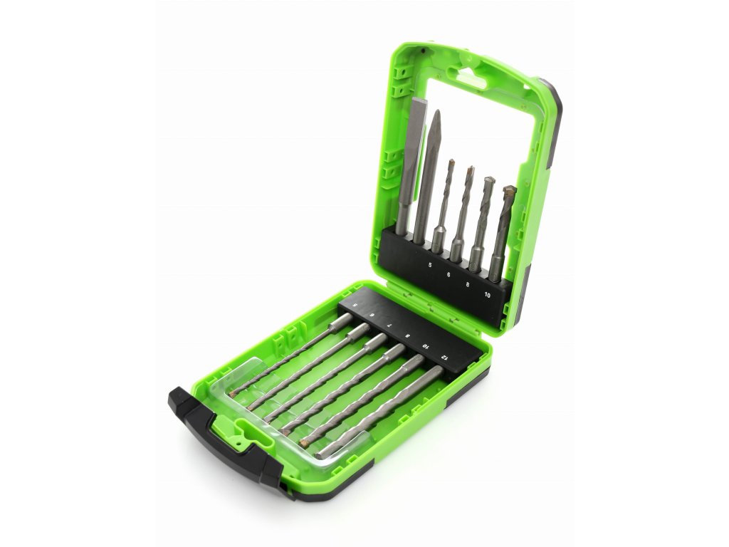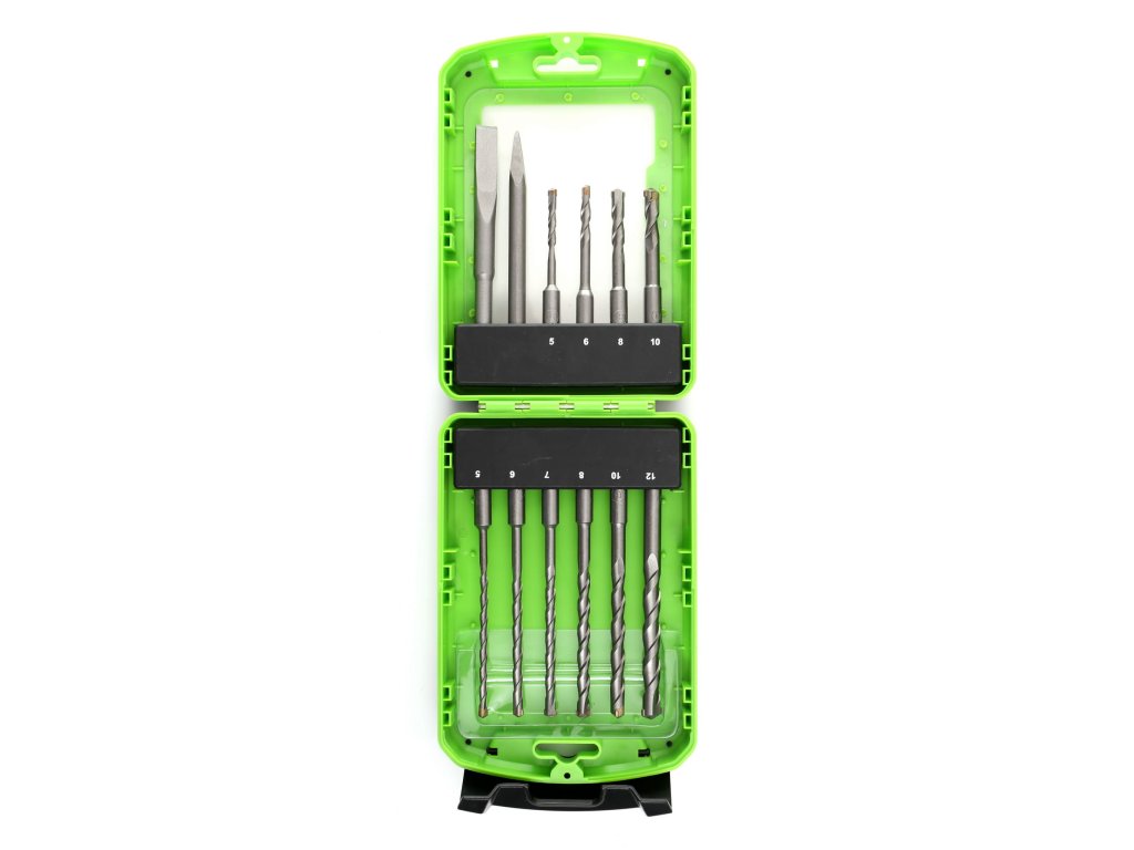 Profesionální sada vrtáků a sekáčů SDS+ je určena pro vrtání a sekání do betonu, zdiva a kamene. Nářadí je vyrobeno s využitím moderních výrobních technologií, které zajišťují maximální rychlost vrtání, vysokou odolnost a efektivní přenos energie nárazu. Speciální geometrie břitu ve tvaru sekáče snižuje tření při vrtání a zvyšuje účinnost práce. Stabilní středicí hrot umožňuje přesné navrtání bez skluzu i v tvrdých materiálech.