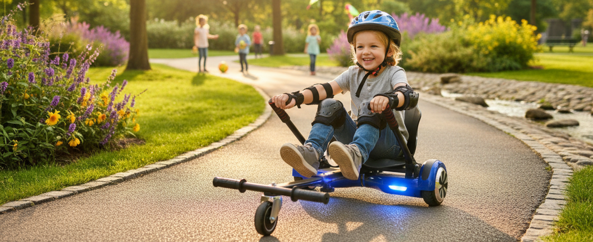 - Stabilní a bezpečná jízda: Díky nízkému těžišti a široké základně poskytuje Hoverkart větší stabilitu a bezpečnost při jízdě než samotný hoverboard.