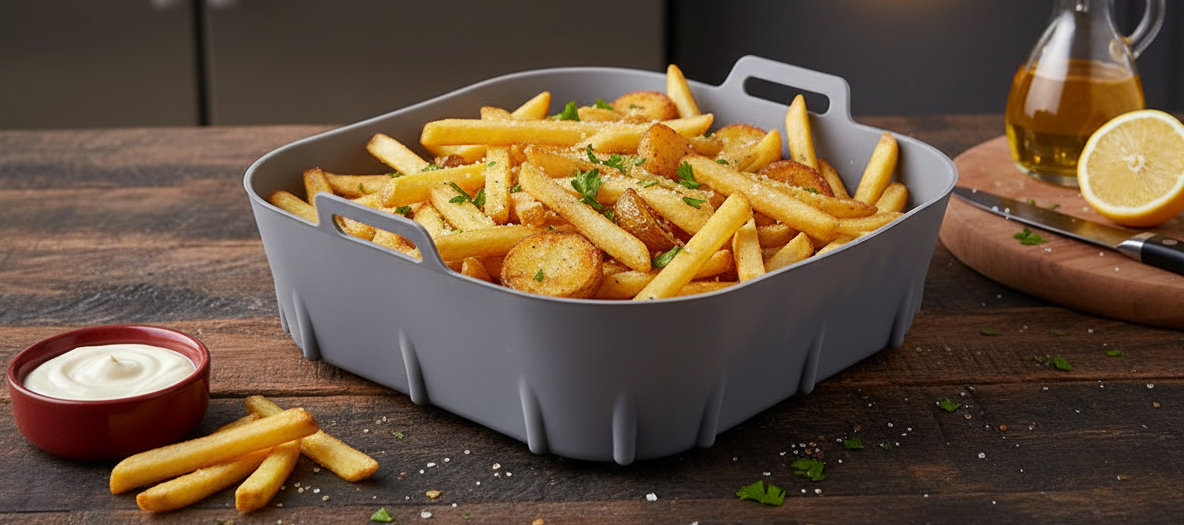 Zdravé, křupavé a rychlé vaření bez tuku? Se silikonovou vložkou do fritézy je to možné! Praktické řešení, které šetří čas, vaše zdraví i spotřebič.