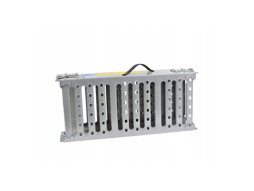 Skládací nájezdová rampa na auto G02047 je užitečným zařízením, které umožňuje jednoduché nakládání a vykládání vozidel. Sada nájezdových ramp obsahuje dvě sklopné masivní rampy pro osobní automobily nebo motocykly se šířkou pneumatik až 225 mm. Rampy mají maximální nosnost 2,2 tuny. Ideální pro použití s přívěsy, padacími bočnicemi a jinými vozidly. Zvýšená přilnavost a bezpečnost díky perforovanému povrchu.