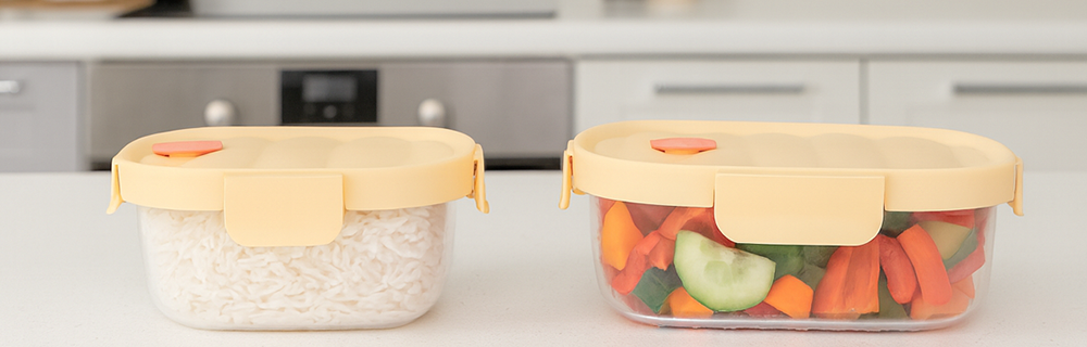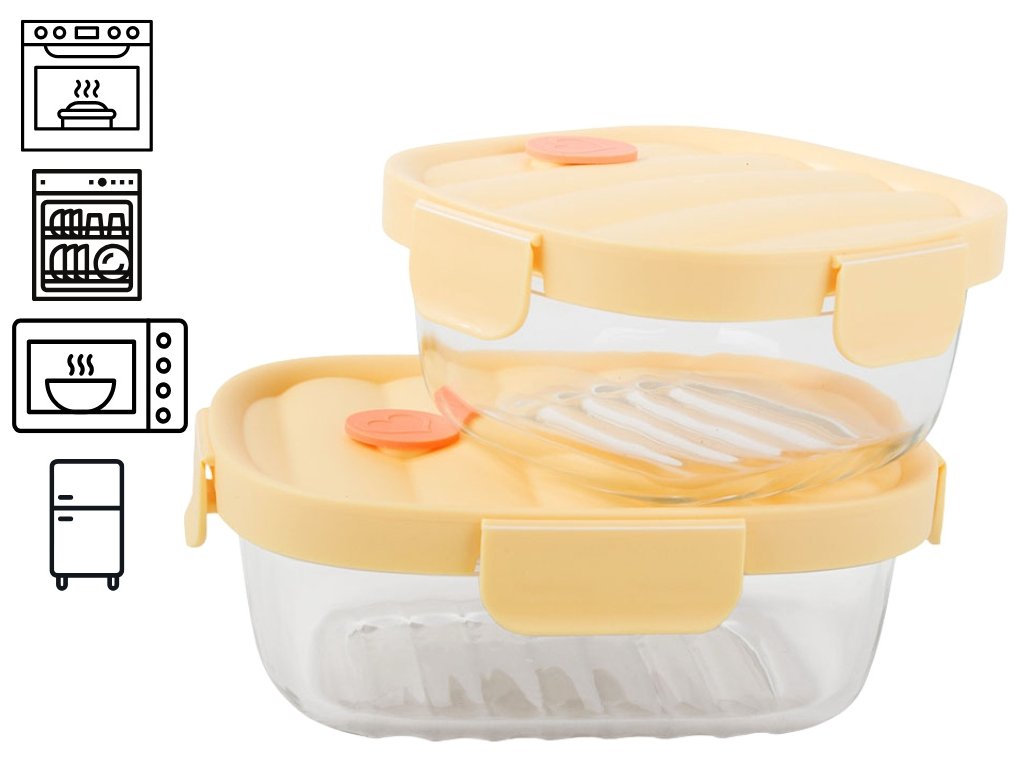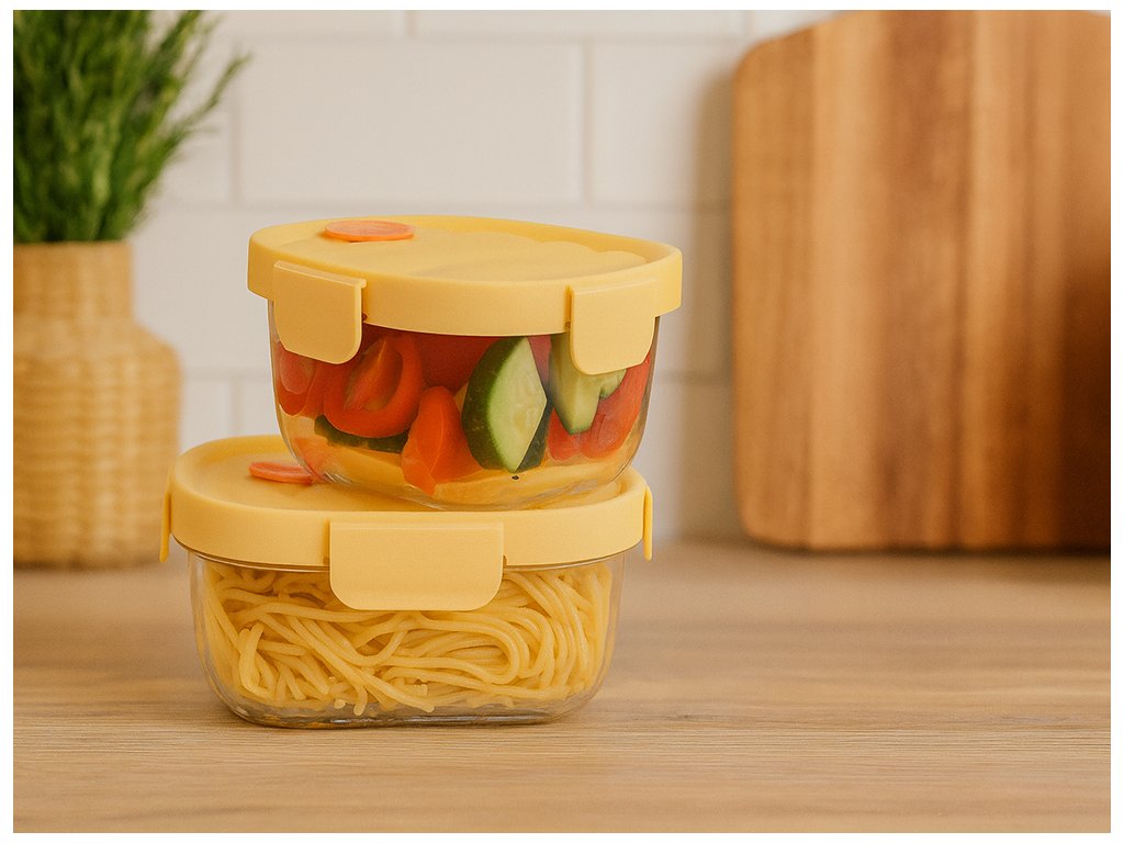 Skleněné nádoby na potraviny jsou praktickým a hygienickým řešením pro skladování, přenášení i ohřívání jídel. Jsou vyrobeny z kvalitního žáruvzdorného skla, které je odolné vůči vysokým i nízkým teplotám a zachovává přirozenou chuť potravin. Plastová víka s těsněním a pevnými západkami zajišťují bezpečné uzavření bez úniku tekutin a pachů. Součástí sady je také termo taška, která usnadňuje přenášení a pomáhá udržet jídlo déle teplé.