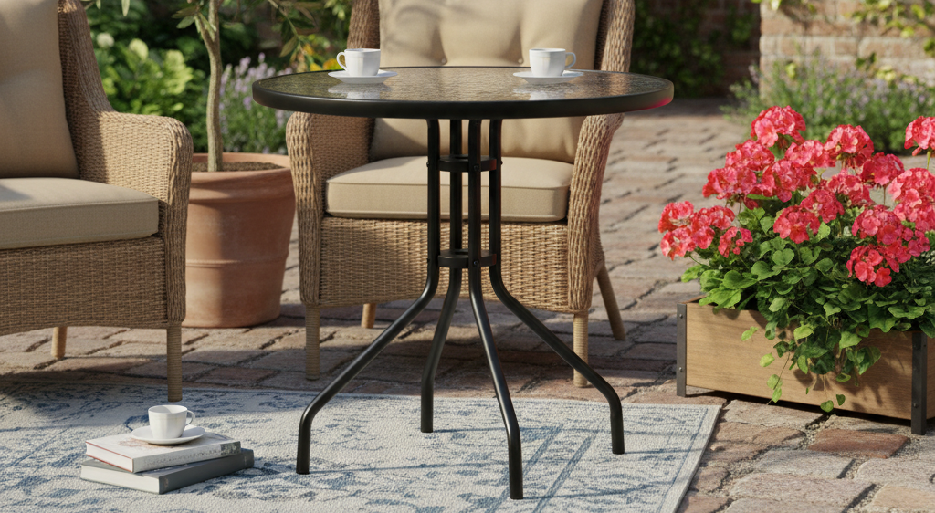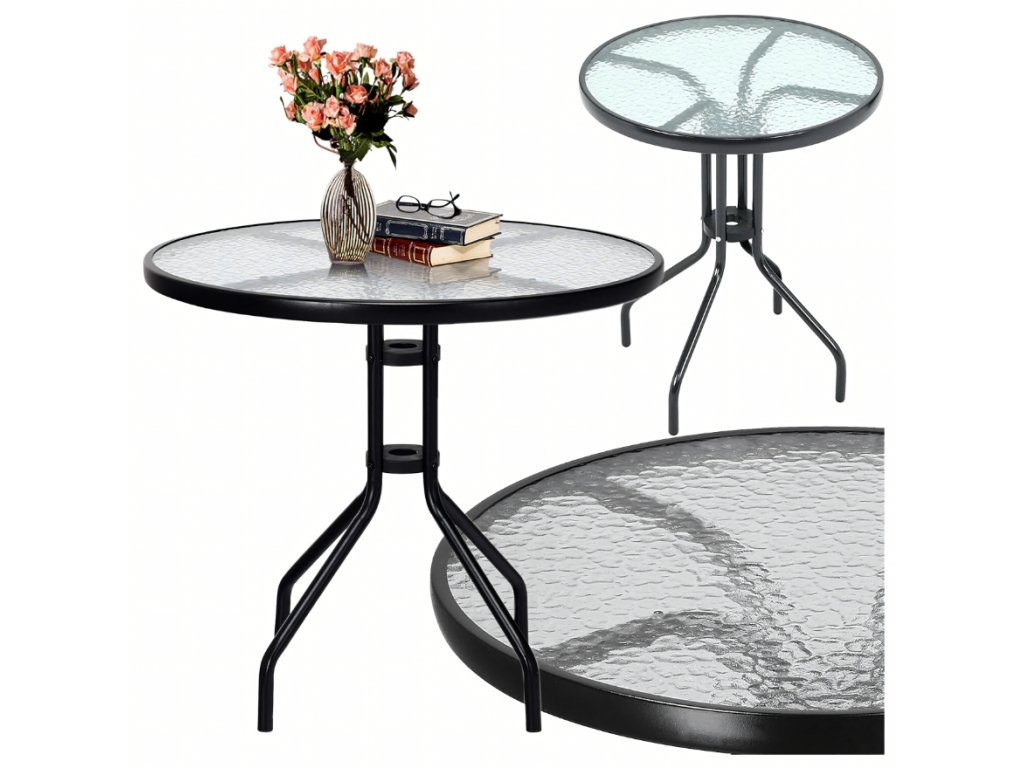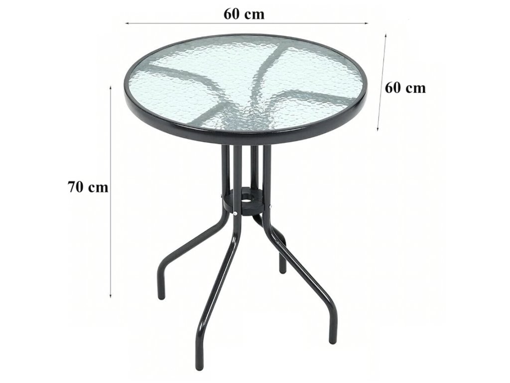 Elegantní skleněný stůl o průměru 60 cm je stylovým a praktickým doplňkem pro balkon, terasu, zahradu i interiér. Kombinace tvrzeného skla a pevné ocelové konstrukce zajišťuje stabilitu, odolnost a snadnou údržbu. Díky kompaktním rozměrům se hodí i do menších prostor, kde vytvoří příjemné místo pro odpočinek nebo posezení u kávy.