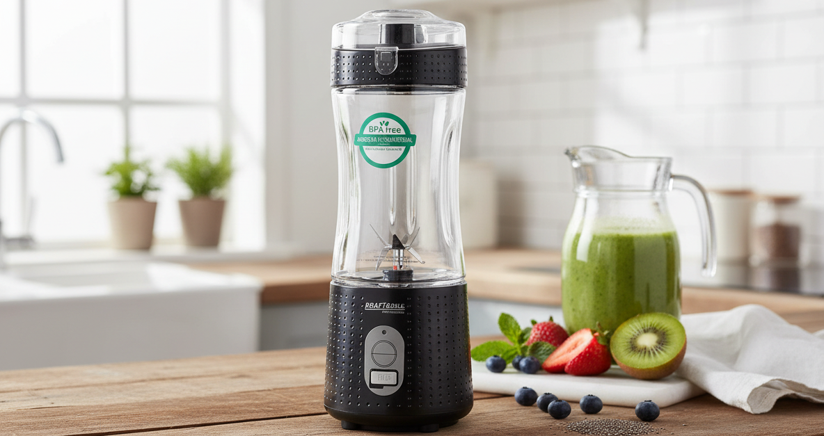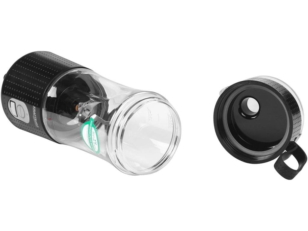 Nádoba z potravinářského materiálu PCTG zajišťuje bezpečné používání, zatímco čepele z nerezové oceli umožňují efektivní mixování ovoce, zeleniny i ledu. Uzavíratelné víko chrání náustek a zabraňuje nechtěnému rozlití.