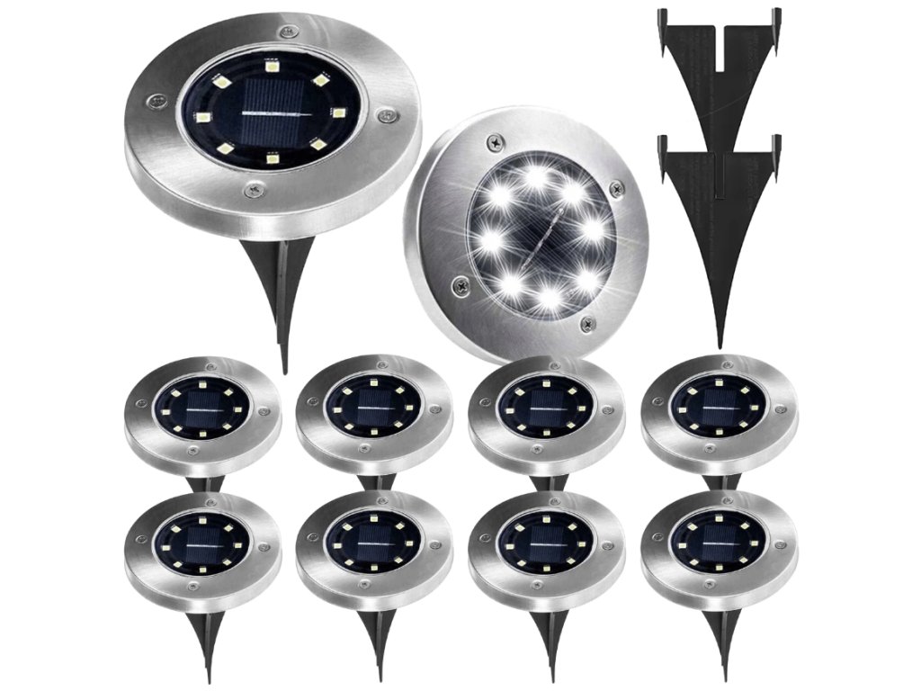 Sada 10 ks solárních LED diskových lamp představuje moderní a úsporné řešení venkovního osvětlení. Elegantní kulatý design z nerezové oceli a ABS plastu se hodí do každé zahrady, na příjezdovou cestu i kolem bazénu. Díky vestavěnému soumrakovému senzoru se lampy automaticky zapnou po setmění a po plném nabití svítí až 6–8 hodin. Solární napájení zajišťuje ekologický provoz bez nákladů na elektřinu.