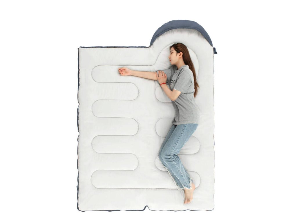 - Konstantní šířka spacáku, bez zužování směrem k nohám, zajišťuje pohodlí a komfort spaní