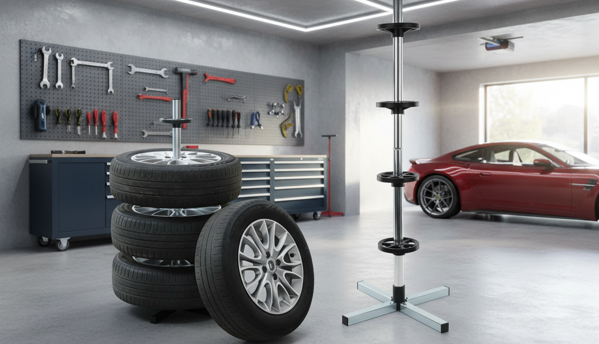 - Uspořádání: Stojan umožňuje pevné uspořádání pneumatik, což usnadňuje organizaci a vyhledávání potřebných pneumatik.