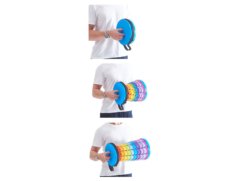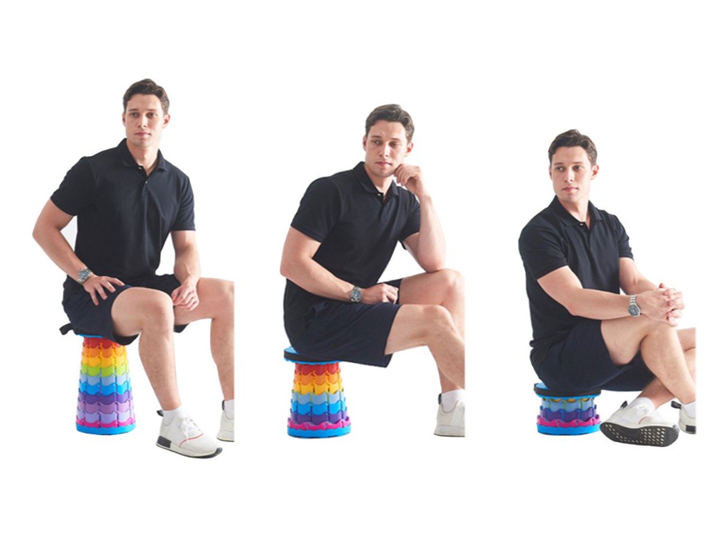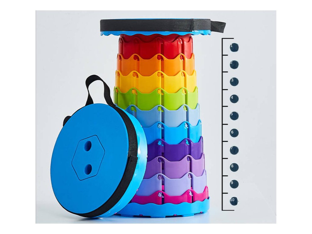 Rozložení i složení stoličky je rychlé a intuitivní. Jednoduše uchopíte madla, taburet vytáhnete do požadované výšky a otočením uzamknete. Díky desetistupňovému nastavení výšky (v krocích po 6 cm) si snadno přizpůsobíte výšku sezení přesně podle svých potřeb.