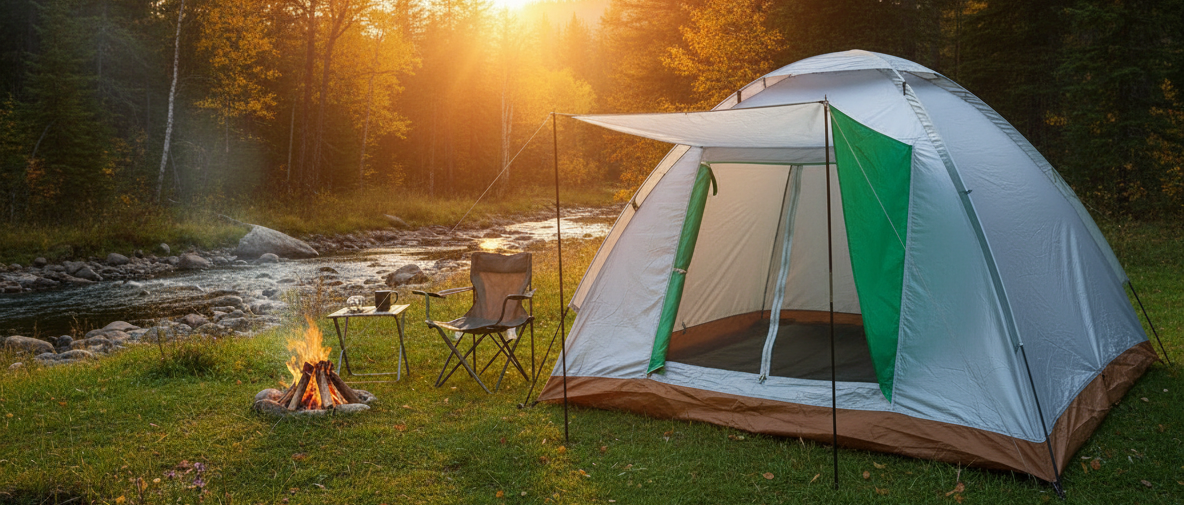 - Ventilační systém: Zajišťuje dostatečné větrání a pohodlí uvnitř stanu.