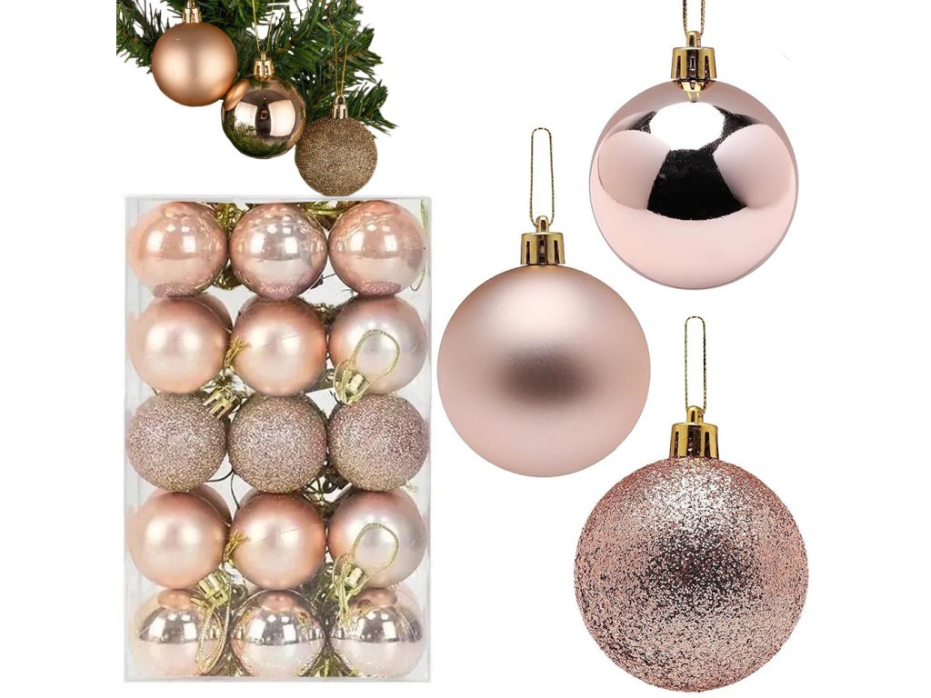 Sada vánočních ozdob je elegantní a vkusnou volbou pro výzdobu vašeho vánočního stromečku. Obsahuje 30 kusů krásně navržených ozdob v různých designech, které dokonale doladí sváteční atmosféru. Zlatavě růžová barva dodává ozdobám luxusní vzhled a elegantní lesk, díky čemuž se hodí jak do moderního, tak i tradičního interiéru.