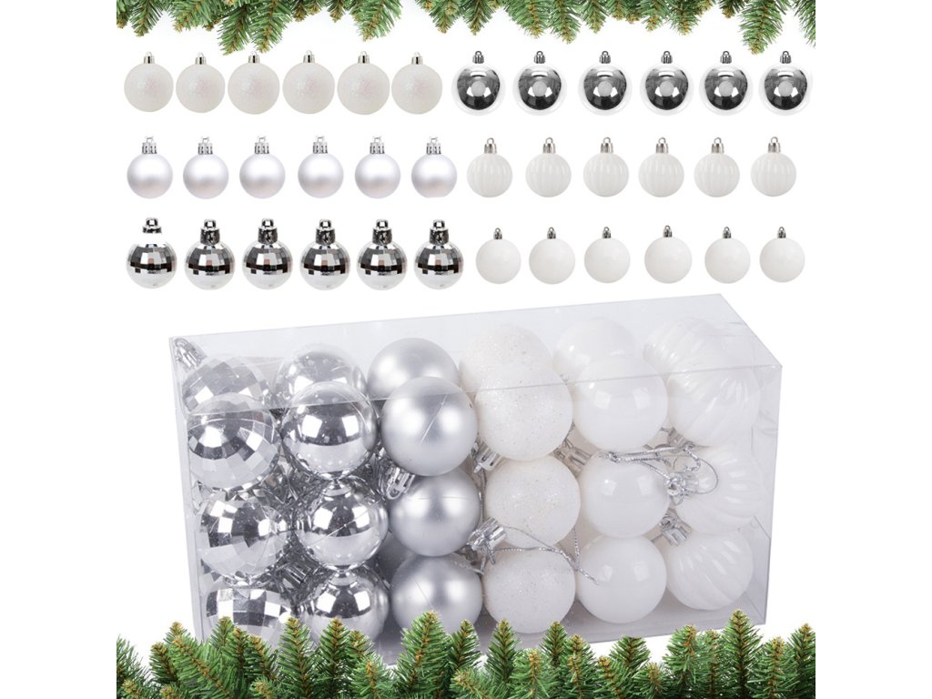 Sada vánočních ozdob je ideální volbou pro všechny, kteří chtějí dodat svému vánočnímu stromečku elegantní a sváteční vzhled. Ozdoby v bílo-stříbrném provedení přinášejí kombinaci lesku, třpytu a decentnosti, která se hodí do jakéhokoli interiéru. Sada obsahuje 36 kusů plastových ozdob v různých designech a texturách, které dodají vašemu stromečku harmonický vzhled.