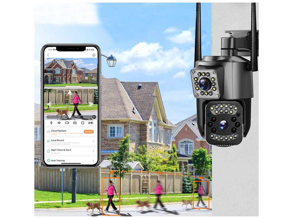 Venkovní Wi-Fi kamera je moderní bezpečnostní řešení s rozlišením Full HD 1080p a funkcí inteligentní detekce člověka (AI). Díky funkci Auto Tracking kamera automaticky sleduje pohyb, což zajišťuje dokonalý přehled o dění před vaším domem, na zahradě, u garáže nebo ve firmě. Je vybavena dvojitým osvětlením (bílé LED + infra LED) pro spolehlivý provoz i v noci a podporuje obousměrnou komunikaci, takže můžete na dálku nejen sledovat, ale i komunikovat.