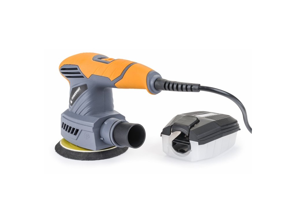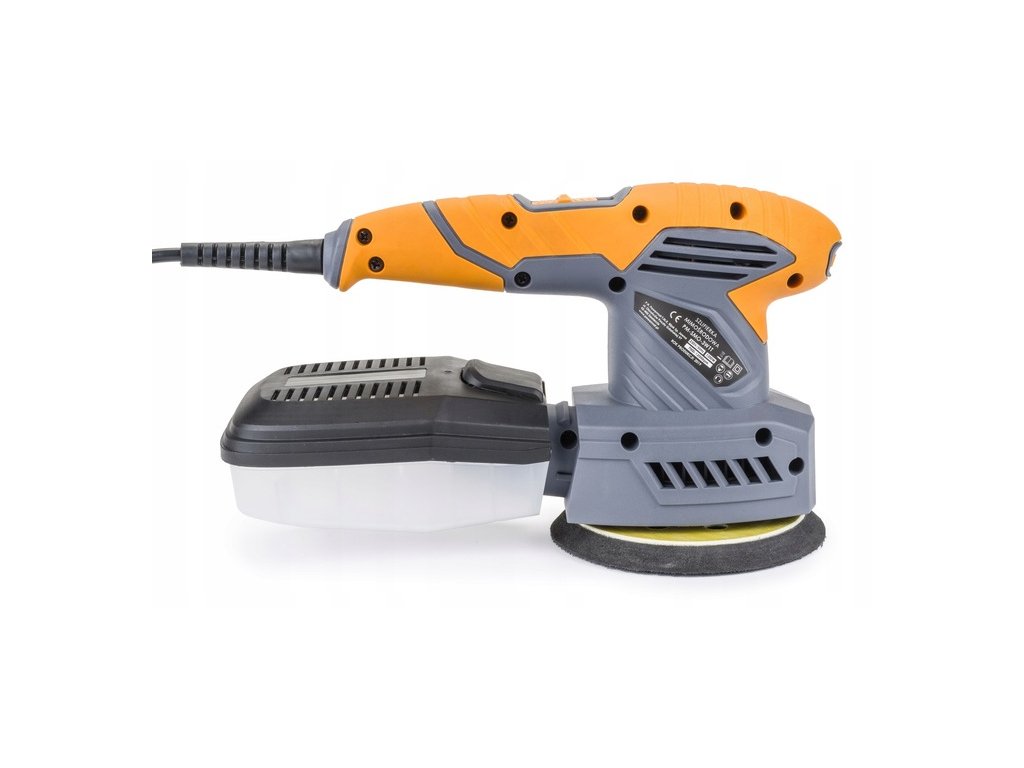 - Pro maximální pohodlí a bezpečnost používání je bruska vybavena speciální protiskluzovou pogumovanou rukojetí. Excentrický pohyb zajišťuje rovnoměrné obrušování zpracovávaného materiálu, bez rýh a nerovností.