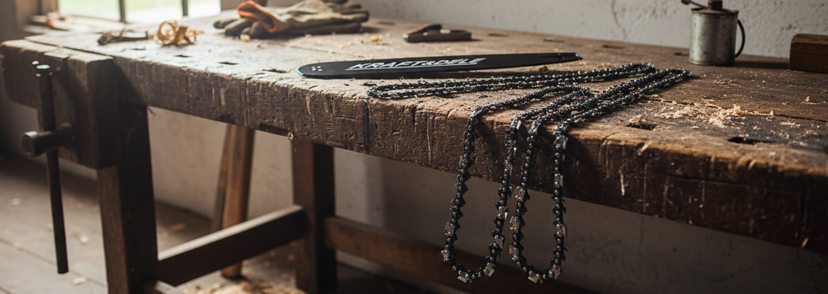 Vodící lišta na motorové pily o délce 40cm je dodávána v sadě včetně dvou řetězů. Vodící lišta je přizpůsobena motorovým pilám mnoha značek, včetně Stihl, Husqvarna, Alpina, Kraft&Dele a mnoha dalších pracujících s 3/8 řetězy a šířkou vodícího článku 1,3 mm.