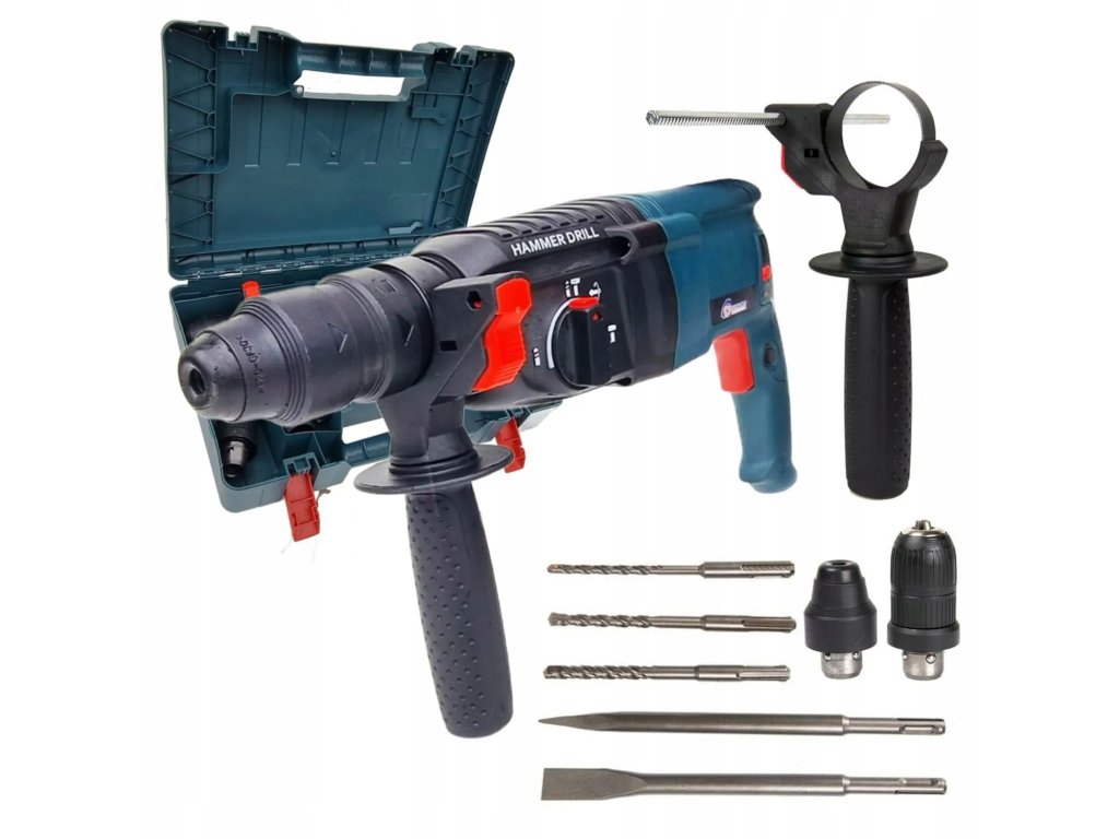 Vrtací kladivo s výkonem 3050 W je profesionální nářadí určené pro vrtání, sekání a demoliční práce v různých materiálech, včetně betonu, zdiva, oceli a dřeva. Díky pneumatickému příklepu o síle 4 J si poradí i s náročnými úkoly na stavbě nebo v dílně. Model je vybaven rychlovýměnným systémem sklíčidla, který umožňuje použití jak SDS+ nástrojů, tak i běžných vrtáků díky přiloženému samosvornému sklíčidlu. Součástí je bohaté příslušenství a praktický přepravní kufr, díky kterému je přístroj vždy připraven k použití.