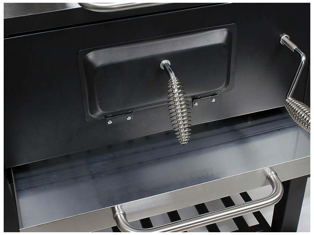 Funkce: teploměr, popelník, dvířka na uhlí, nastavitelná výška roštu, ventilace