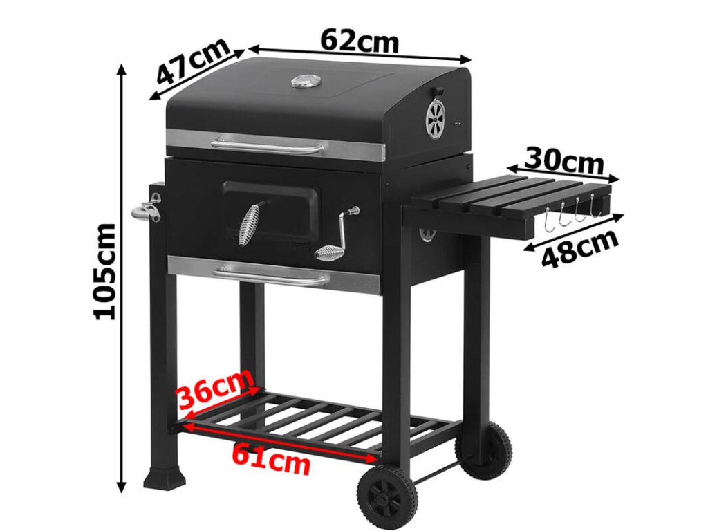 Rozměry grilu: 62 × 47 × 105 cm