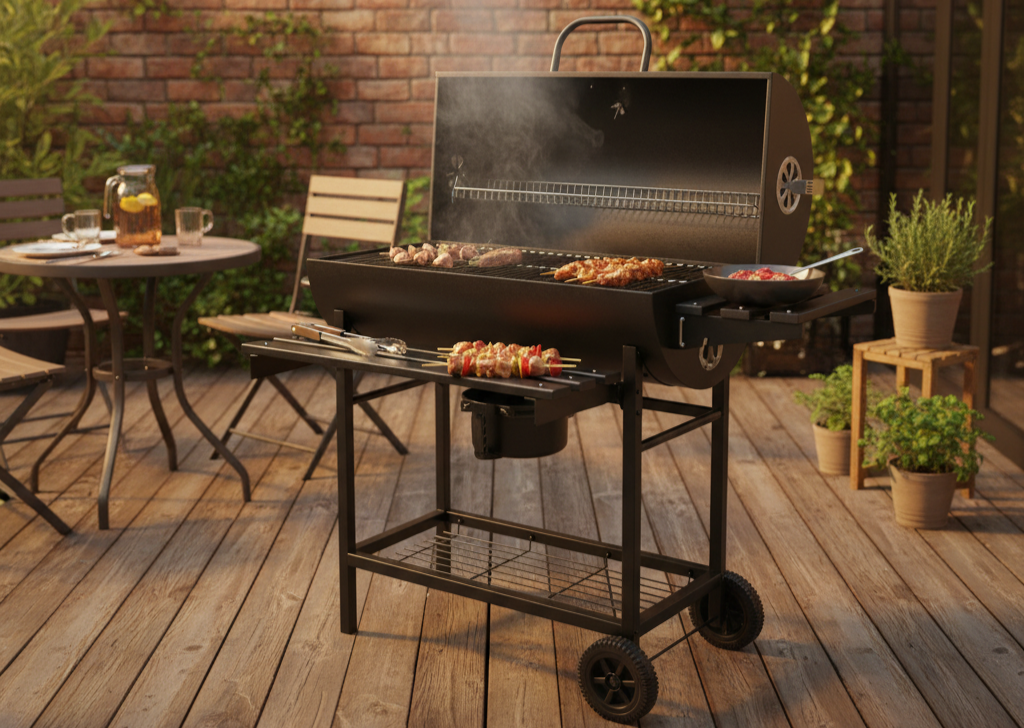 Zahradní gril je ideální volbou pro každého, kdo chce grilovat pohodlně, bezpečně a s maximální kontrolou nad výsledkem – perfektní řešení pro každou zahradu či terasu.