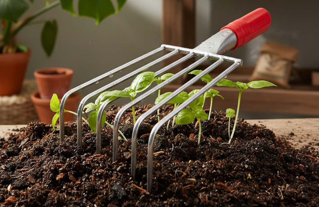 - Provzdušňování půdy kolem květin a zeleniny.