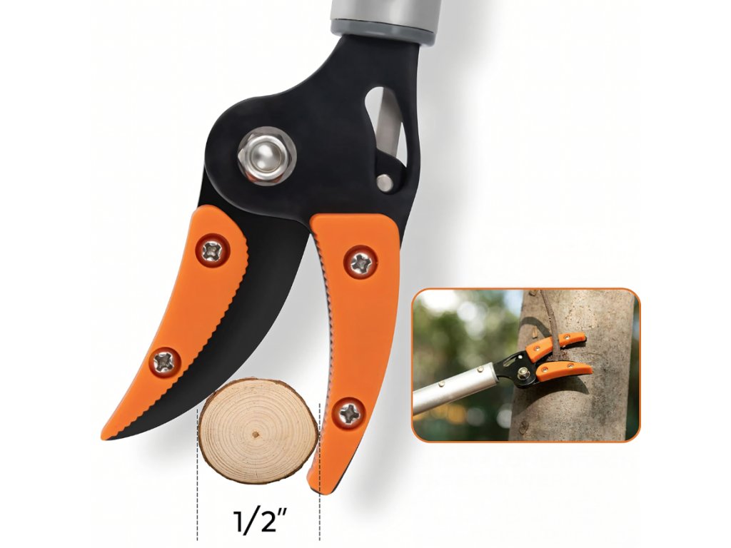 Zahradní nůžky s délkou 100 cm jsou praktickým pomocníkem pro stříhání větví ve výškách bez nutnosti použití žebříku. Díky lehké konstrukci a ostré ocelové čepeli umožňují pohodlnou a přesnou práci při údržbě stromů, keřů i okrasných rostlin. Jsou vhodné nejen pro prořezávání, ale také pro šetrný sběr ovoce.