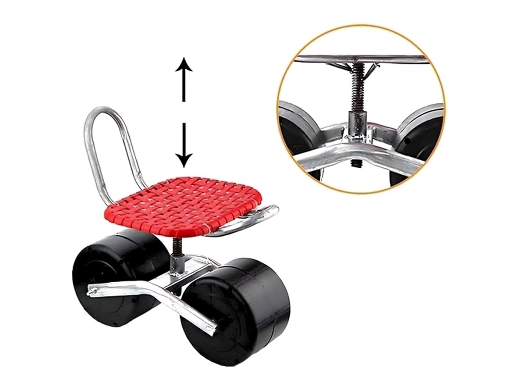 Tato pojízdná zahradní stolička výrazně zpříjemní práci u země a pomůže snížit fyzickou zátěž při dlouhodobých činnostech. Je skvělou volbou pro zahrádkáře, kutily i všechny, kteří chtějí pracovat pohodlně a bez bolesti zad.