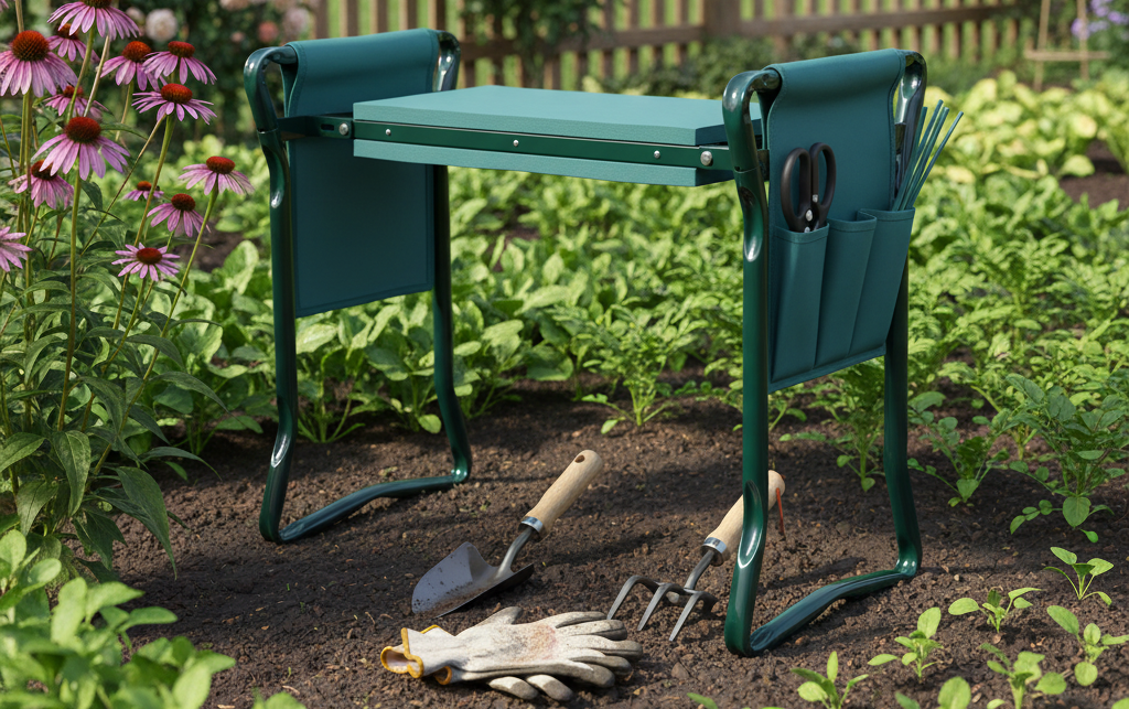 Zahradní stolička a klekátko je praktická multifunkční pomůcka 3v1, která slouží jako klekátko, stolička a organizér na zahradní nářadí. Díky měkkému pěnovému polštáři poskytuje pohodlnou oporu při práci na kolenou i při sezení. Pevná ocelová konstrukce zajišťuje stabilitu a nosnost až 100 kg, zatímco skládací design umožňuje snadné přenášení a skladování. Praktické kapsy na nářadí po stranách poskytují dostatek prostoru pro uložení drobného zahradního vybavení, takže máte vše potřebné vždy po ruce.