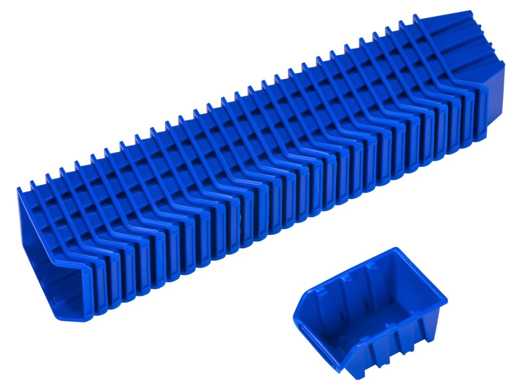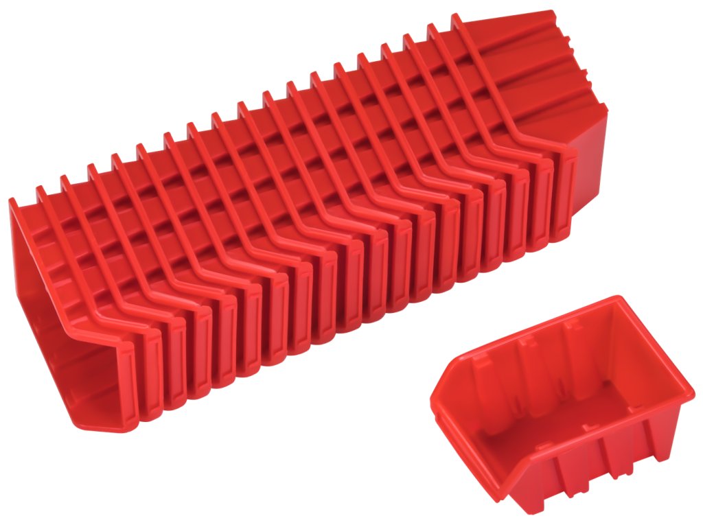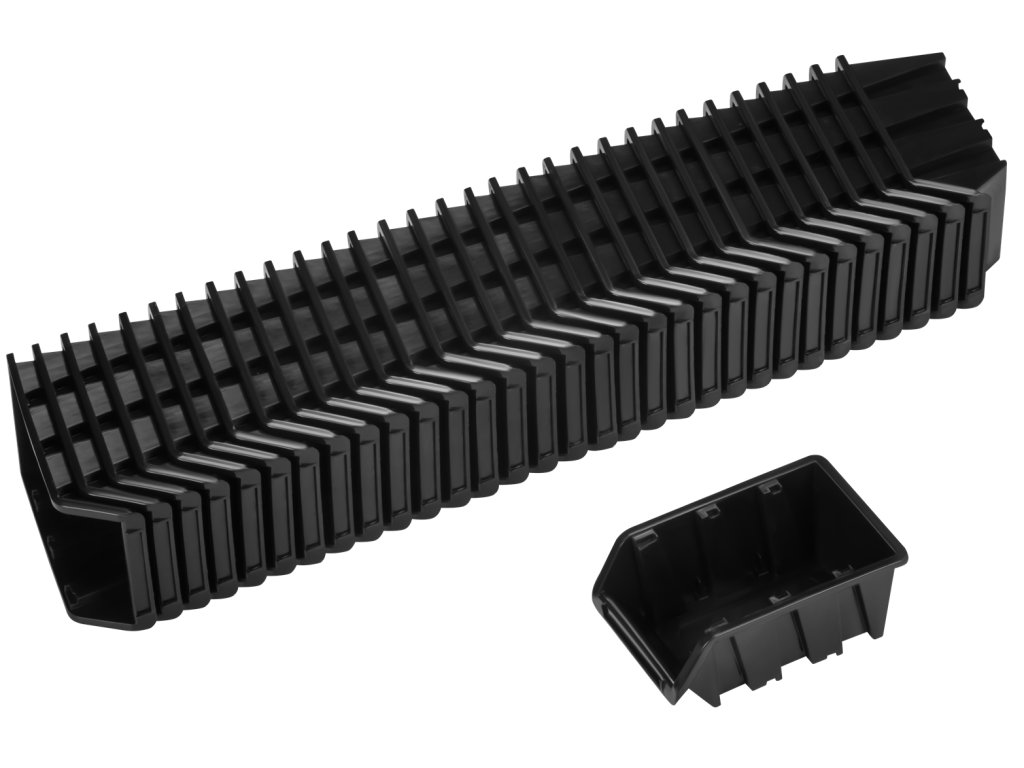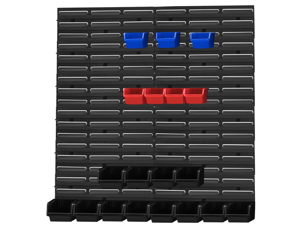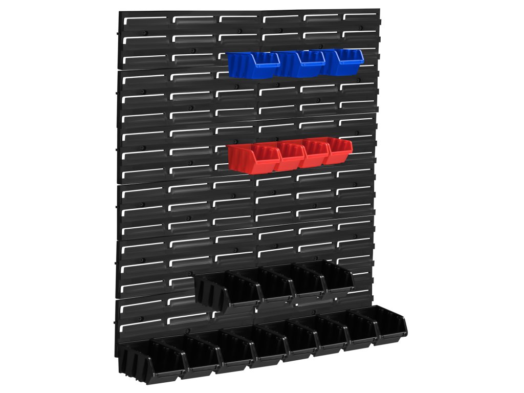 Systém je tvořen 12 samostatnými zadními deskami, které lze libovolně rozmístit a přizpůsobit prostoru. Celkem 82 stohovatelných kontejnerů různých velikostí poskytuje dostatek místa pro šrouby, matice, hmoždinky, spojovací materiál, elektroinstalační drobnosti i jiné malé díly.