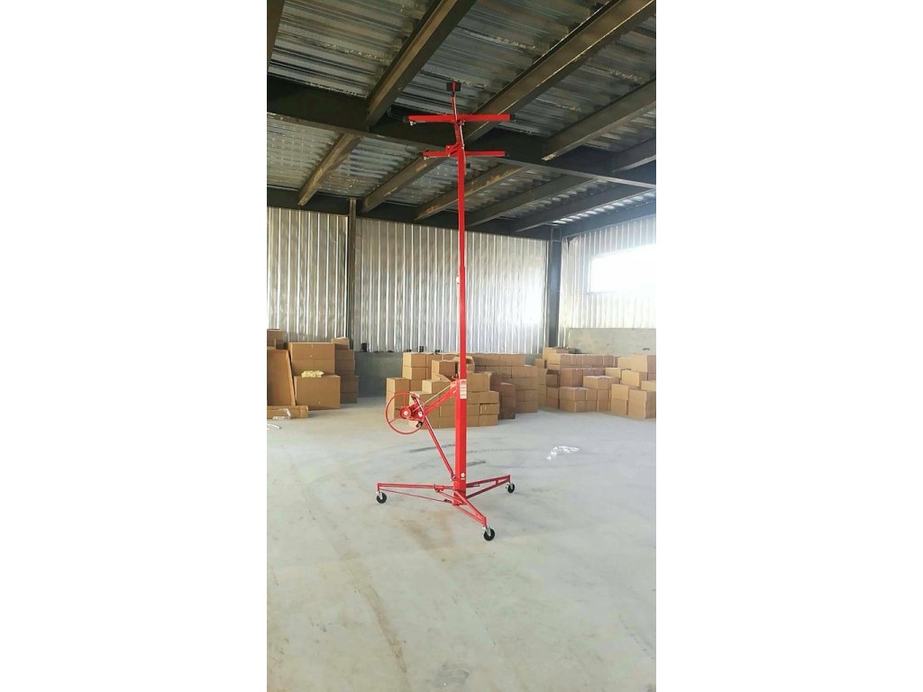 - Snadná manipulace: Zvedák je snadno ovladatelný a umožňuje přesné zvedání sádrokartonových desek na místo určení.