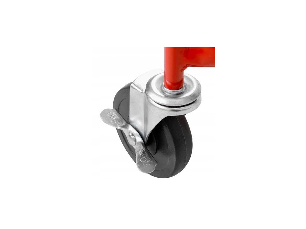 - Bezpečnostní prvky: Zámky kol a systém proti náhodnému složení během práce.