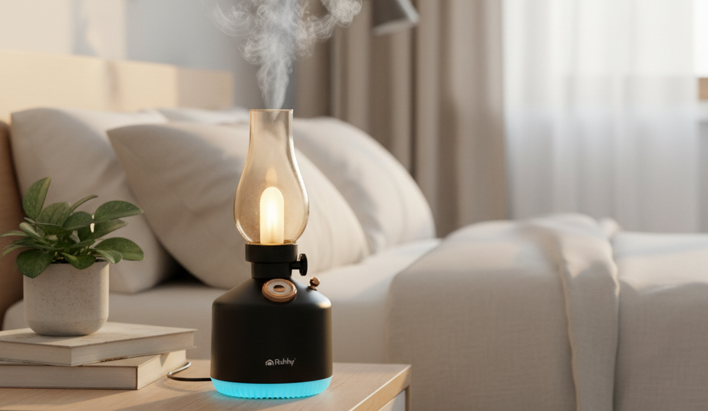 Zvlhčovač a aroma difuzér 2 v 1 je praktickým i designovým doplňkem interiéru. Nabízí jemnou mlhu, RGB LED podsvícení se 14 barvami a bezpečný provoz bez otevřeného ohně. Elegantní retro design v černém provedení se hodí do moderních i vintage prostor.